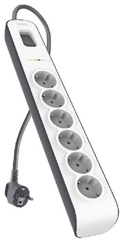 ENCHUFE PROTECTOR BELKIN 6 SALIDAS (REGLETA) CON PROTECCION CONTRA SOBRETENSIONES CABLE 2 METROS BLANCO/GRIS