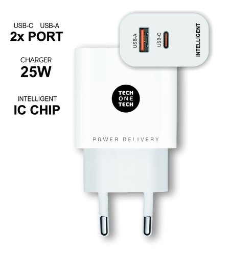 CARGADOR TECH-ONE-TECH PARED BLANCO USB-C/USB-A 30W